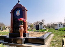 На территории места захоронения был установлен один памятник. Центральная его часть изготовлена из чёрного диабаза, а украшающая арка – из красного лезника. Надгробье украшает фигура полумесяца. На памятник мы нанесли основную информацию о покойном и эпитафию, текст дополнили портретом на керамике.