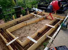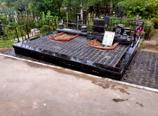 Далее устанавливаем подставки под памятники, заливаем их бетоном и ещё раз кладём подложку.